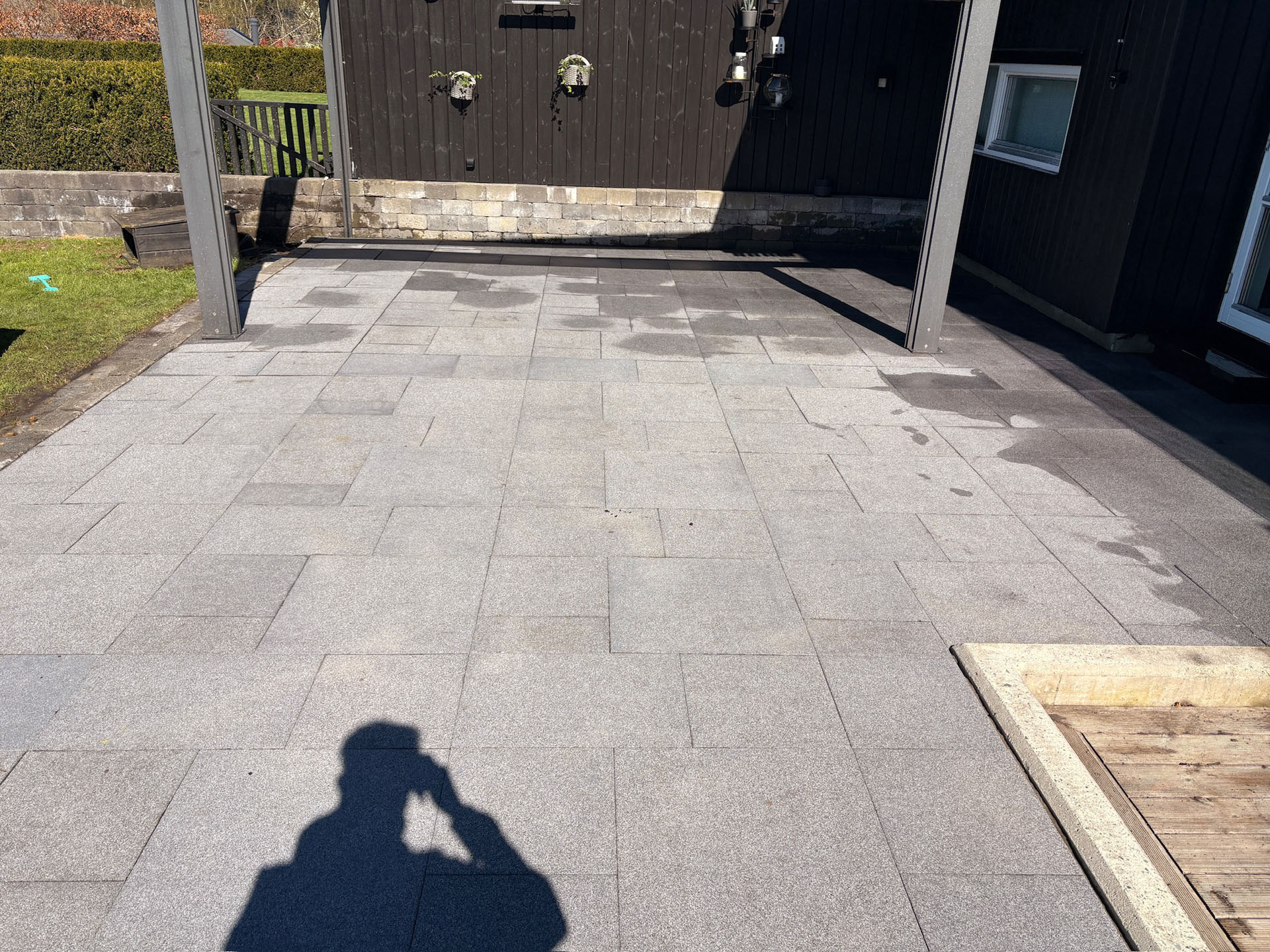 La oss sørge for at terrassebord og plattinger får tilbake fargen. Grønske og alger fjernes skånsomt uten slitasje på treverket.